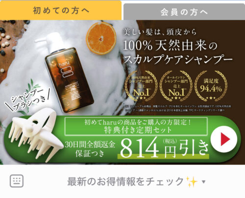 初めての方へはシンプルにメイン商品の訴求を行い、初めての方専用の特典を掲載することでハードルを下げた内容になっています。一方で会員の方へは再購入してもらいやすいクーポンの提示など、ファンになってもらいやすいデザインだと言えるでしょう。