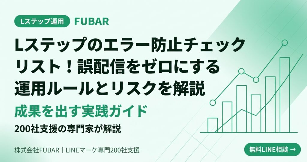 Lステップは一度配信すると取り消せず、設定ミスが信用失墜やブロック急増に直結します。200社を支援した専門家が、誤配信をゼロにするエラー防止チェックリストと運用ルール、万が一の対処フローまでを3分類で解説。 -