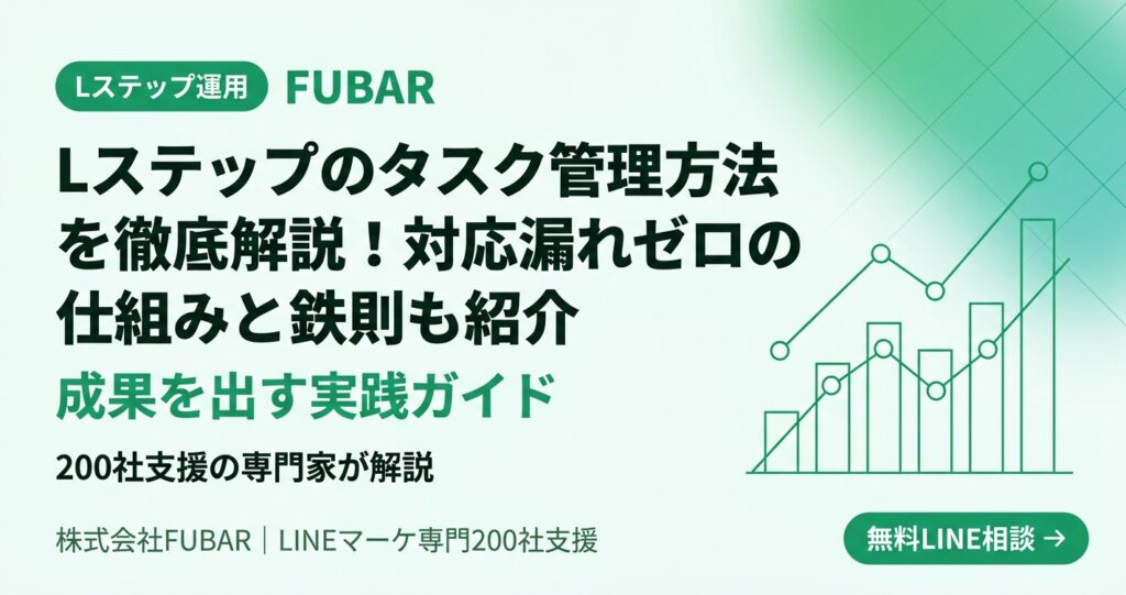 Lステップのタスク管理で対応漏れに悩んでいませんか?200社超の支援実績を持つ専門家が、標準機能での顧客対応管理と外部ツールでのチーム業務管理を使い分け、運用を効率化する鉄則を解説。 -