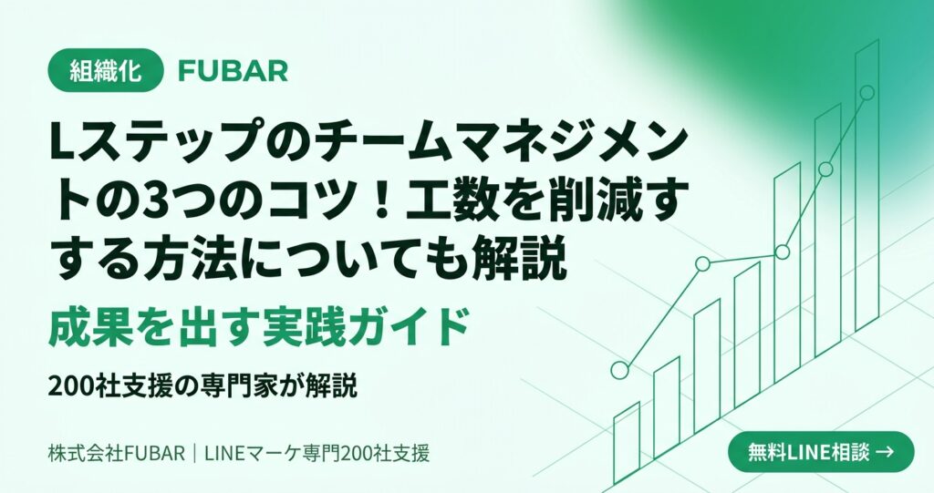 Lステップのチーム運用で属人化やミスに悩む方へ、200社を支援した専門家がマネジメントが難しい理由と成功させる3つのコツ、工数を削減する具体的な方法を解説。誰が担当しても安定して成果を出せる自走型チームの作り方を紹介。 -