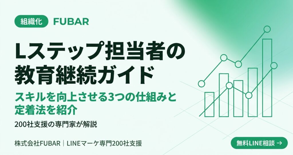 Lステップの担当者教育が続かない原因と、スキルを継続的に向上させる3つの仕組みを200社支援の専門家が解説。知識の陳腐化やノウハウ消失を防ぎ、チーム全体のレベルを維持する定着法と組織構築の実践ステップを紹介。 -
