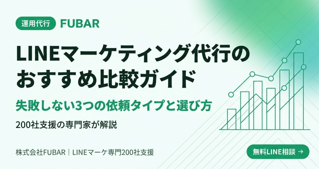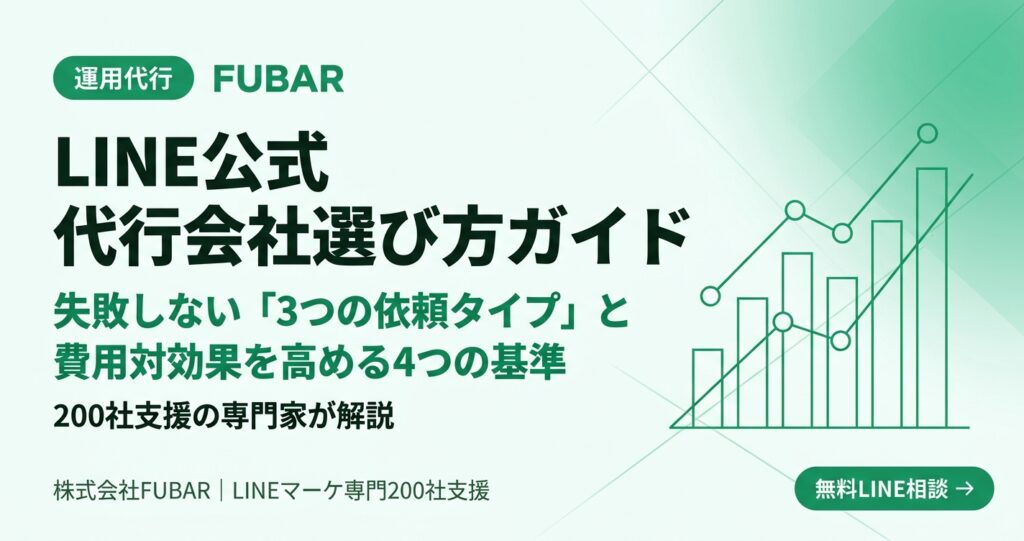 LINEマーケティング代行の選び方を200社超の支援実績から解説。失敗しない3つの依頼タイプ、費用相場、おすすめ比較の判断基準、ノウハウを社内に残す委託方法まで、経営判断に必要な実務視点で紹介。 -