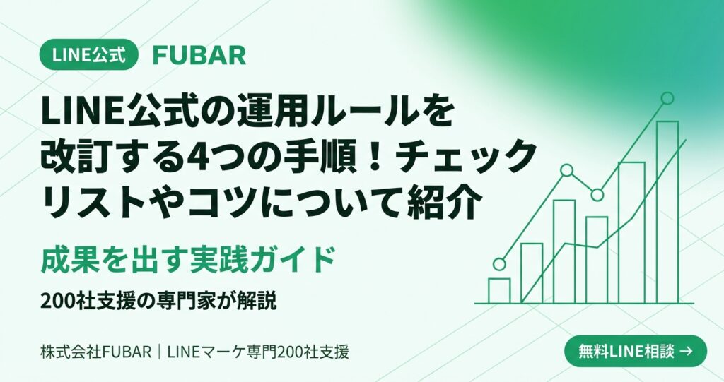 LINE公式アカウントの運用ルール、古いままになっていませんか?200社支援の専門家が、改訂が必要なリスクと4つの手順、見落としを防ぐチェックリストを実務目線で解説。誤配信を防ぎ運用品質を保つコツも紹介。 -