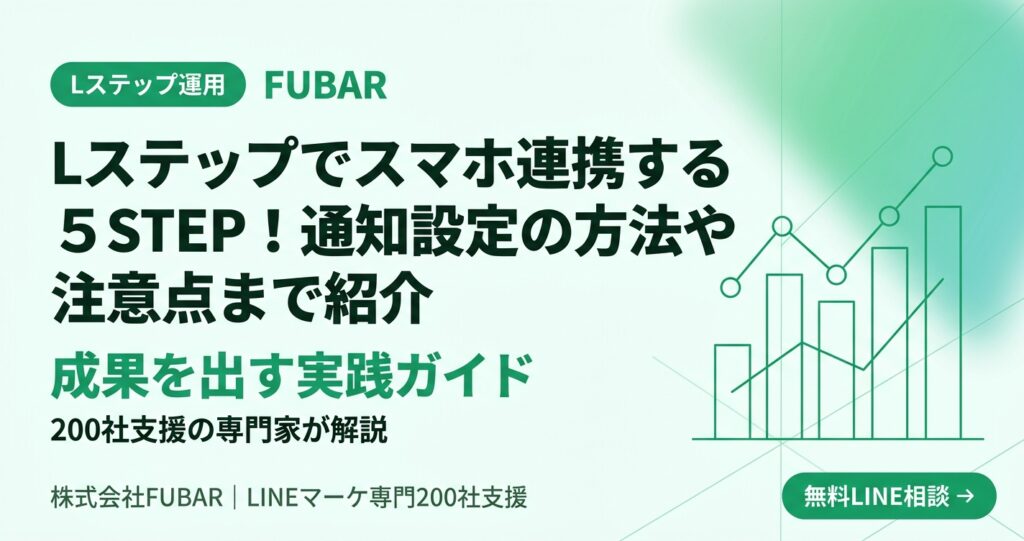 Lステップのスマホ連携を5STEPで解説。200社超を支援した専門家が、通知設定の方法や連携時の注意点、操作を効率化するコツまで網羅。スマホから顧客対応やリアルタイム通知を実現し、配信効果を高めたい方に向けて紹介。 -