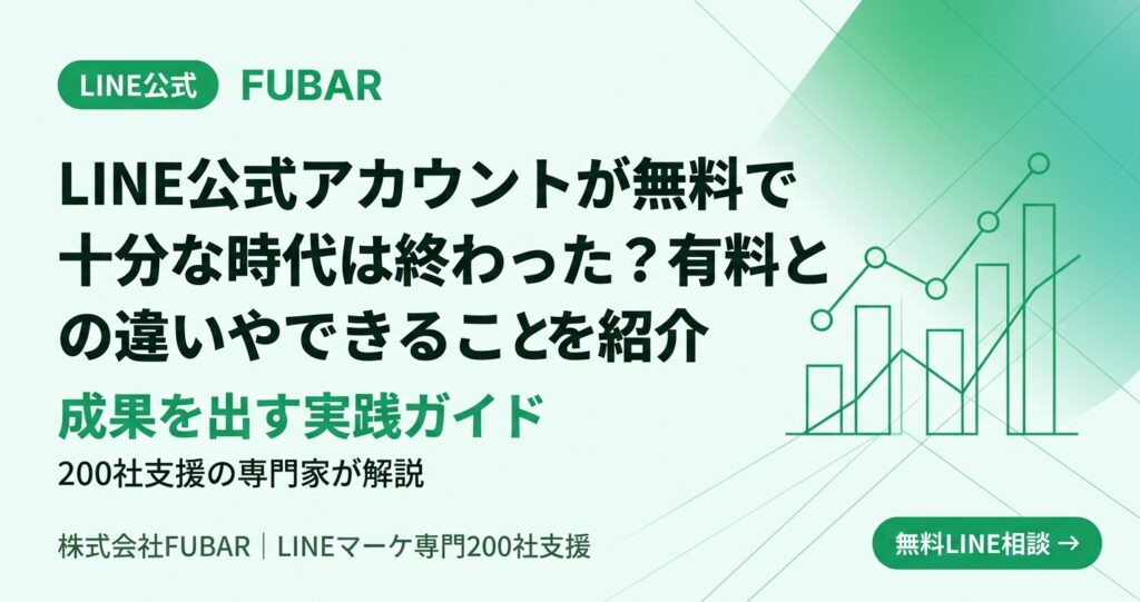 LINE公式アカウントは無料で使えるのか、有料プランと何が違うのかを200社以上を支援したLINEマーケティング専門家が徹底比較。無料で利用できる機能や配信数の上限、有料プランに切り替えるべきタイミングの判断基準まで具体的に解説。 -